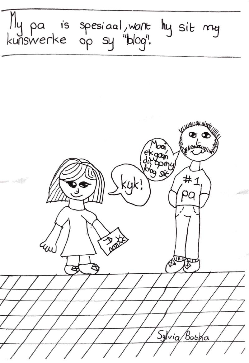 Recently, GOU#2 (age 9) and her classmates compiled a father’s day book, where each child had to draw a picture illustrating what makes their dad special.