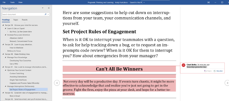 For those of you viewing this blog in its 100% text-only form, the screenshot above is of the part of the text explaining that not every day is going to be a productive one.